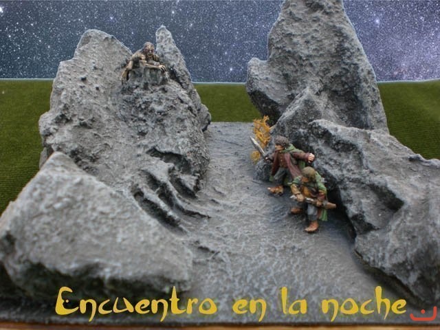 Gollun arriesga todo y se enfrenta a los hobbits para recuperar el anillo. El diorama representa la noche, por eso Gollun tiene los ojos rojos. Consta de 3 miniaturas.