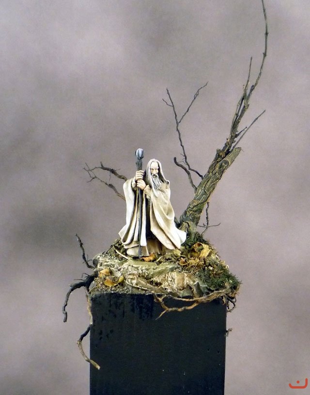 Figura de Saruman ambientada en el bosque de Fangorn.