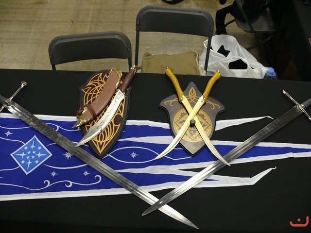 Espadas y cascos en el stand de LGDA