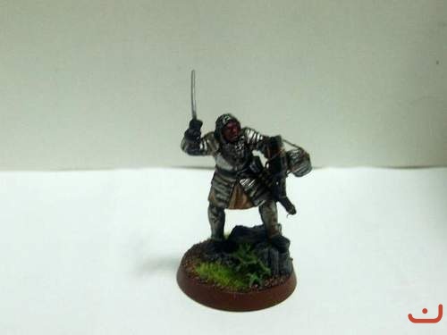 El cuerpo pertenece a un guerrero de minas tirith. Le puso la cabeza de un orco y le modele la cota malla que le cubre la cabeza. La cabeza del hombre la coloque el escudo como si fuera un trofeo.