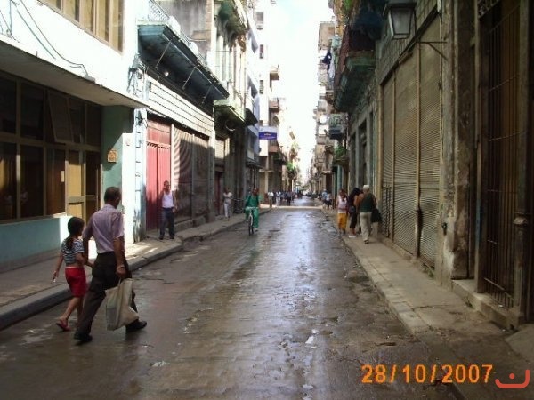 Aquí os pongo una típica calle cubana. En la Habana vieja son todas de este tipo. Conforme nos salimos del centro las calles son iguales, sin embargos los edificios pasan a ser sólo de una o dos plantas.