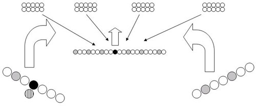 Es la táctica clásica del ejército. Es muy parecida a la anterior pero con dos laterales. Mientras la infantería entretiene al enemigo por el centro, los caballeros buscan las mejores posiciones por el flanco y la retaguardia para cargar y atrapar al enemigo y de paso anular las lanza y picas. Esta táctica va bien para escenarios donde haya que ocupar objetivos, contra ejércitos de pocas miniaturas y fáciles de rodear, como Isengard.