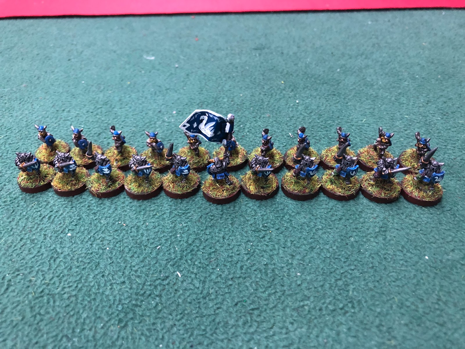 Y hemos puesto a las tropas en peanas de 15mm y la caballería en peanas de 25mm.