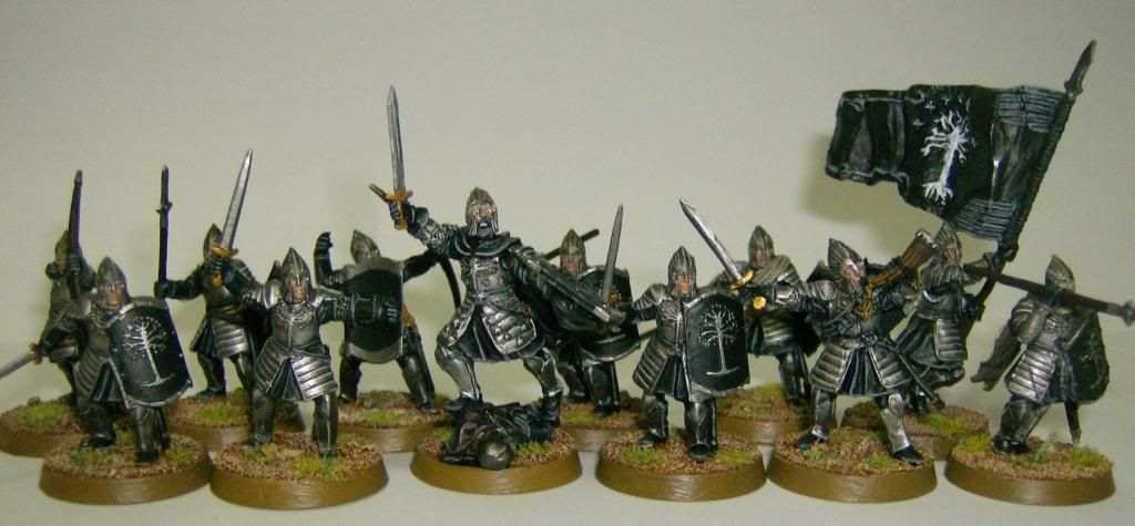 Pues ahí esta mi compañía de haradrim las únicas conversiones son el estandarte hecho a partir de otro de WH y el del cuerno que esta hecho con un lancero y esculpido el cuerno y el brazo que lo sujeta.