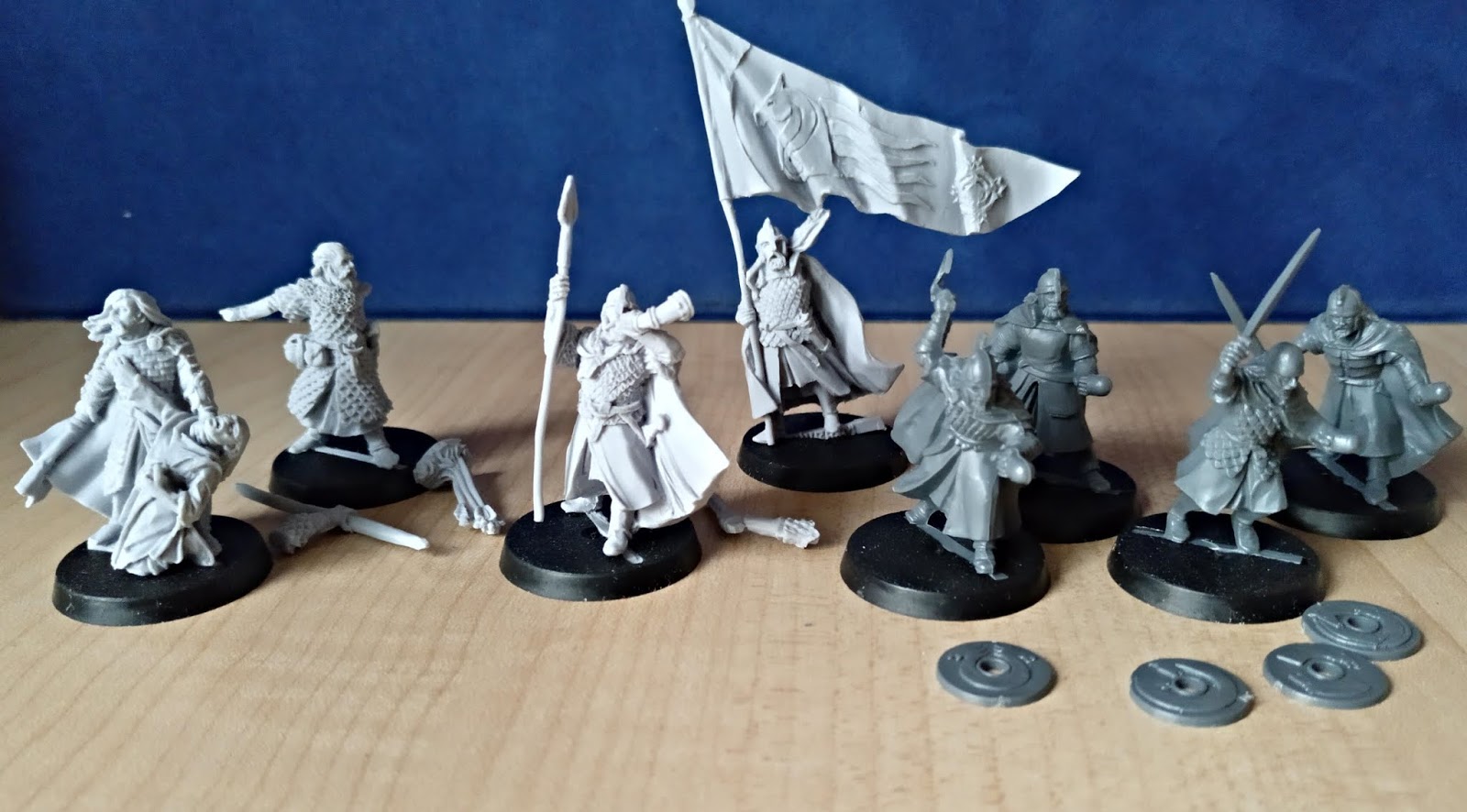 Aquí presento mi compañía para este mes, continuo con Rohan, en este caso 4 guerreros a pie (los 4 que me quedaban de la caja de los campos de Pelennor) y los 4 del pack de comandantes. Ahora a comenzar con la ardua y para mi aburrida tarea de quitar rebabas y limpiar las miniaturas pero es verdad que luego merece la pena el esfuerzo