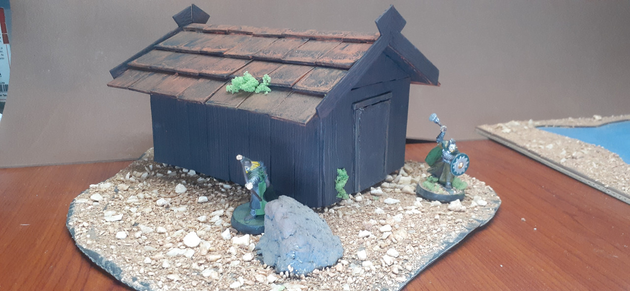 Un campamento en medio de las dunas y rocas del desierto y con techo de quita y pon con imanes, para que las minis puedan entrar en el interior ya sea para buscar algún objetivo tener cobertura o para guerrear un poco.