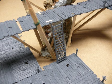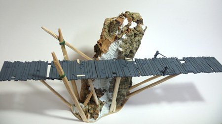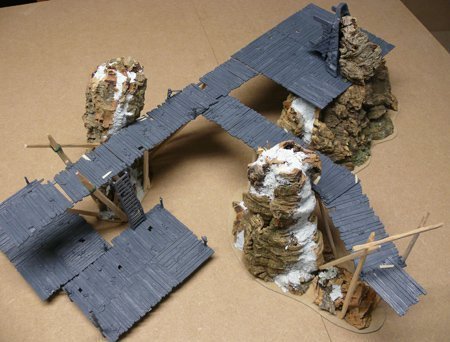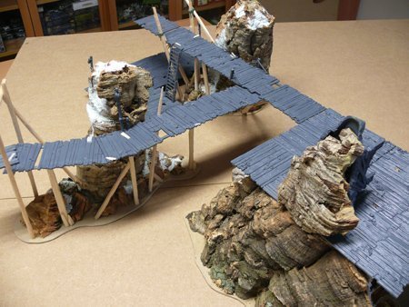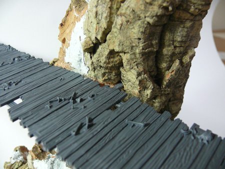La montaña a la que adosas la pasarela son dos trozos de corcho de los típicos de los belenes (benditos chinos en navidad con sus complementos para los belenes tirados de precio), y que has unido formando un tubo y rematado con masilla o aguaplast, es así?