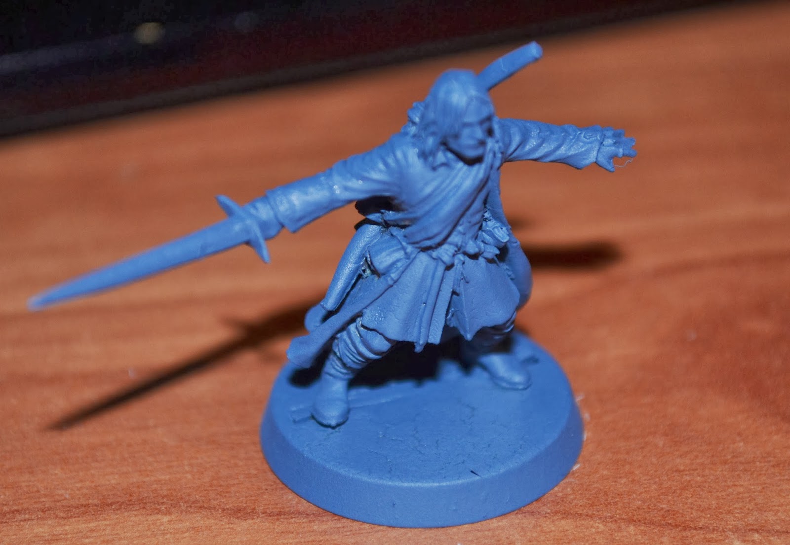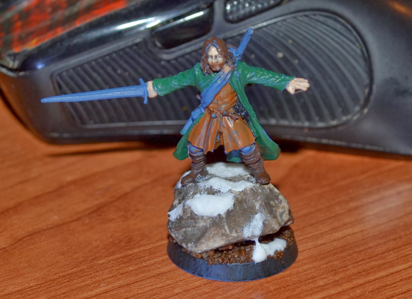 No estoy demasiado contento de cómo me está saliendo, pero bueno, tampoco va mal... Quizás es porque lo anterior que he estado pintando han sido varios enanos de la compañía de Thorin, y hay una considerable diferencia entre ésas y este Aragorn. Sobretodo en la definición del esculpido...