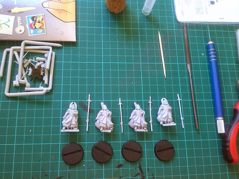 Pues tras un tiempo sin subir novedades.. he encontrado un hueco y he comenzado a preparar a los Guardias del Patio del Manantial, en donde les he quitado las rebabas, limado, lavado y enmasillado. Aquí una par de fotillos del proceso: