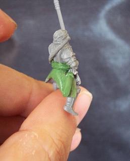 También cuidaremos de retocar las uniones (haciéndole una faja al incursor, por ejemplo) o recomponiendo la capa si el Haradrim la llevaba. Para hacer una faja, aplica una tira de masilla y extiéndela por la cintura. Luego, haz una serie de cortes más o menos irregulares a lo largo de la faja para simular el doblado de la tela.