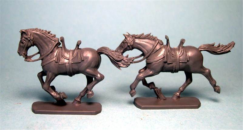 Estos son los que te decía yo, Fleve, de Conquest Games, son geniales y clavaos en escala, solo hay que limarles un pelín los laterales donde vaya encajao el jinete, pues son un pelín más gorditos, pero son iguales... mira en google imágenes \"Conquest Games horses\" y te aparecerán dos imágenes que puedes ver bien el caballo que es, iba a enlazarla, pero al perecer el url de la imagen está roto o dañado y no se visualiza ni aquí ni en el foro inglés...