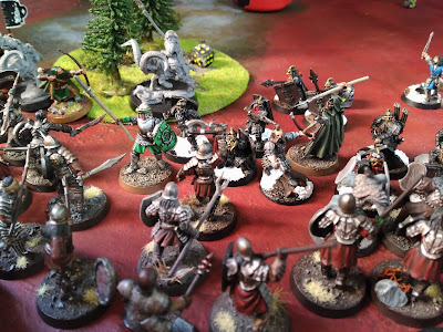 La partida fue muy entretenida, y muy divertida, con theodred obligado a cargar, y A.M. amenazando al capataz para que fuera útil (y lo fue, salvo 3 puntos de poder creo). El Héroe de la partida fue grimbol, que resistió los disparos, acabo con una sola herida (sin más destinos), quito el solo 4 heridas al mumak, elimino a los últimos haradrim para desmoralizarlos, y porque la partida acabo. Los arcos fueron decisivos (tenia 24 + cazador del rey) para mermar el mumak, el cual acabo con 6 heridas, 3 el castillo, y 3 haradrim en el. Pero eso permitió que el resto del ejército estuviera en perfecta forma en el choque final. Otro detalle a tener en cuenta: el +1 al combate de theoden es de 12Um no de 6Um (lo hice mal