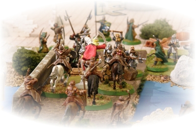 El asesino ve a Faramir acercarse por la orilla, y grita a los suyos. - Malditos moradores de la arena, cruzad ahora o no lo haremos nunca !!! - y su voz tiene efecto, algunos guerreros y un caballero cruzan el puente y cierran el paso a Faramir y sus refuerzos.